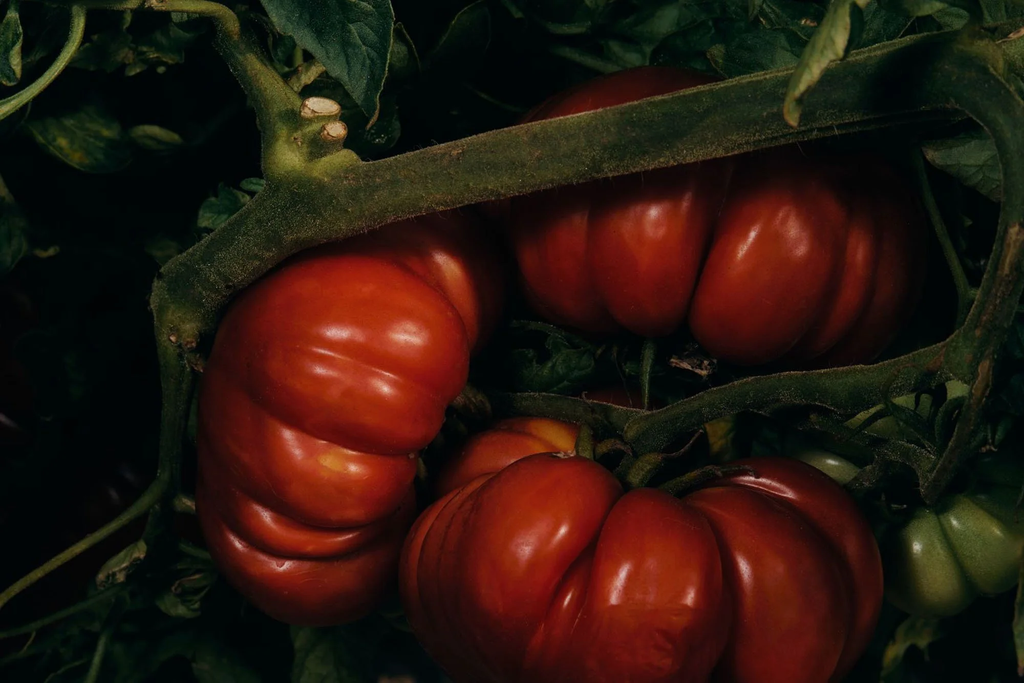 We grow a deliberately curated collection of heirloom tomatoes chosen for depth of flavor, distinctive character, and visual beauty, sourced from seeds selected and bred by master gardeners, homesteaders, and small farmers across generations.